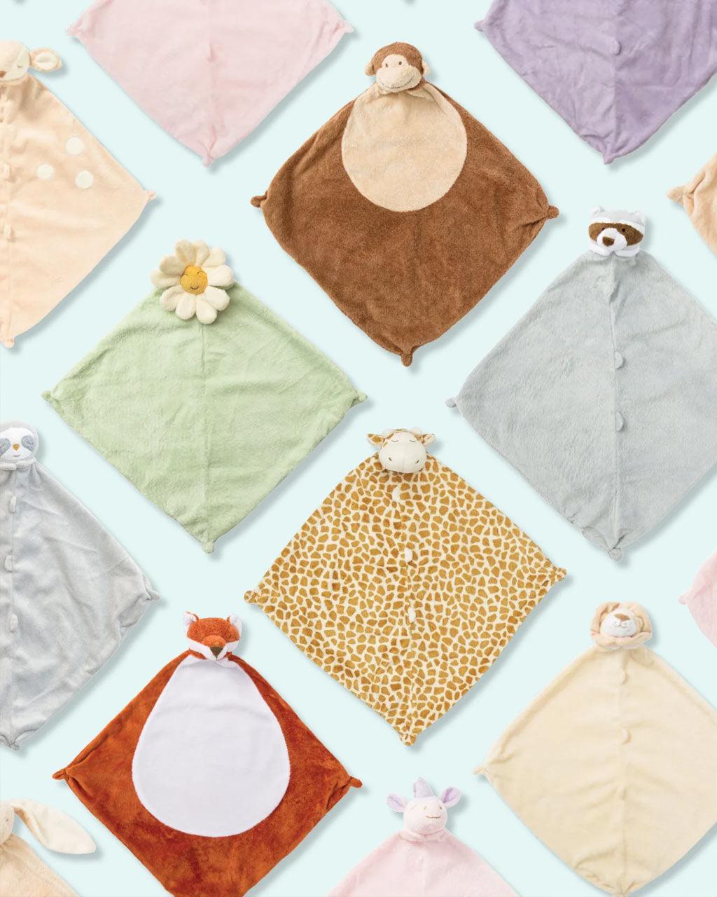 A perfect little security blankie and tagalong for your child. The delicious cashmere-like material is perfect for babies and toddlers to snuggle. Each blankie features a sweet animal head that’s easy to grip. It will bring smiles and comfort to your little napper and will likely become a favorite animal friend to take along on many adventures.