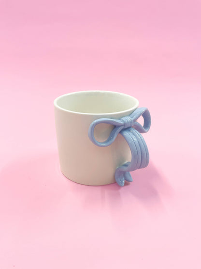 Add a touch of sweetness to your morning routine with our Blue Bow Mug. This handmade mug is the perfect addition to your kitchen or makes the perfect gift!