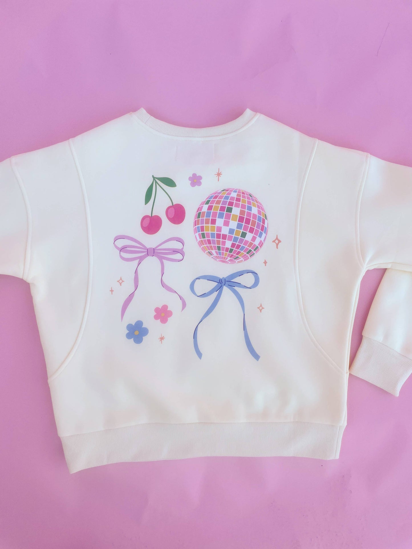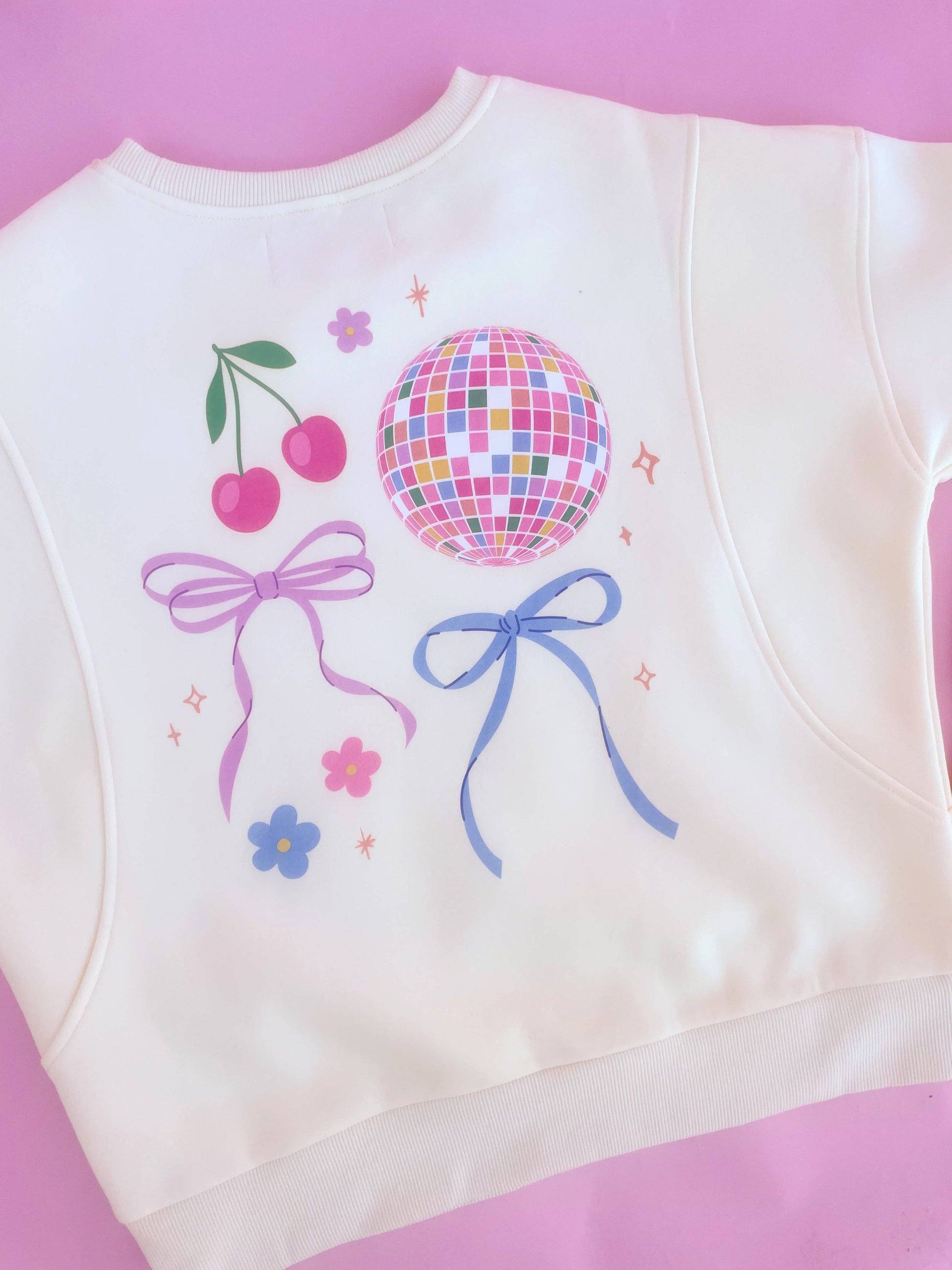 Cream Disco Ball and Bows Crewneck Sweatshirt