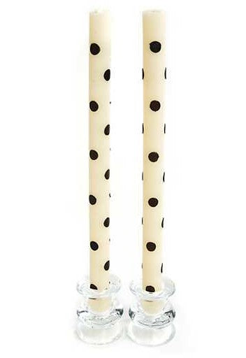 Turn your everyday meals into something more memorable with our Dot Dinner Candles. They feature a fun and fresh hand-painted pattern of polka dots that add the glowing touch of MacKenzie-Childs to your dining table. This set of beeswax-blend candles will cast a lovely lustre on your table for up to 10 hours.