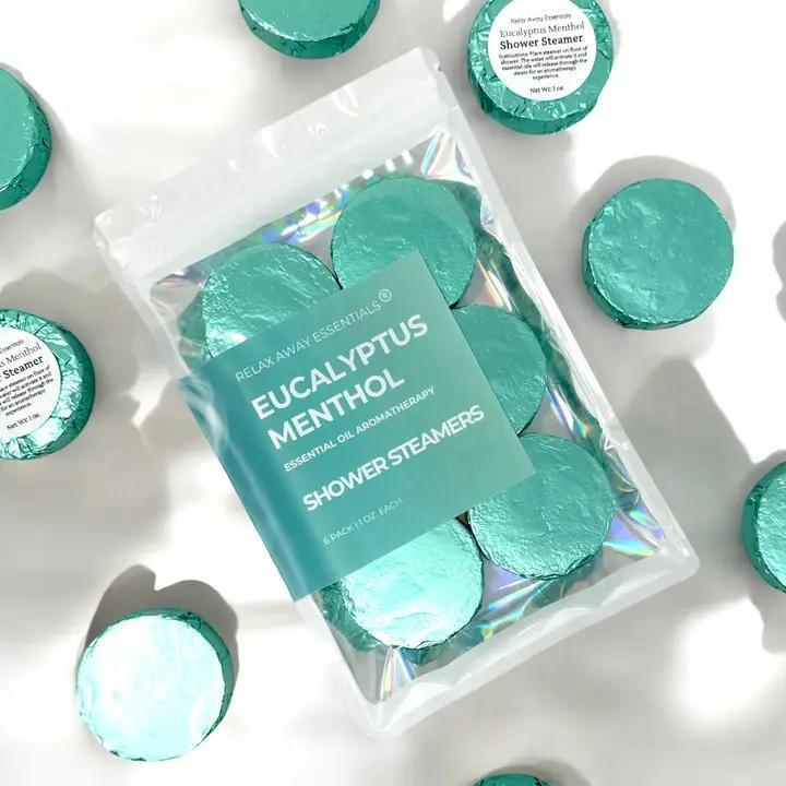 Our Shower Steamers are Handmade in Hillsboro, Missouri using clean, simple ingredients only. | Dye-Free | 6 Shower Steamers in a Resealable Pack - 3 Scents (2 Steamers of each) - About 1 oz. each, 2 in. diameter and about a half inch thick - Individually wrapped with instructions