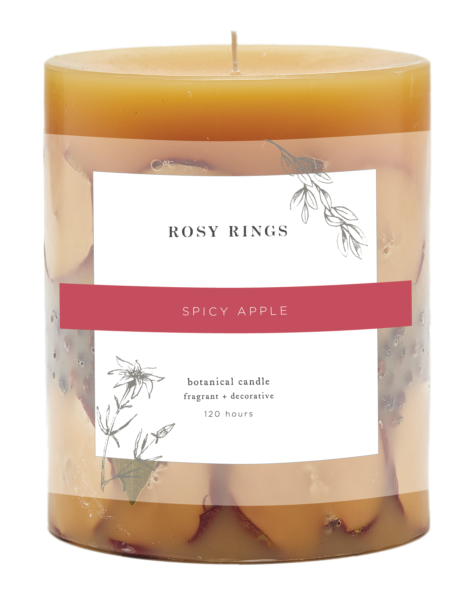Juicy Macintosh apple and a spicy accord of cardamom, clove, nutmeg with lots and lots of cinnamon. From shells to fruit to assorted fauna, you'll find them all inside our 1 wick round botanical candles. A fragranced wax core is wrapped in a flame retardant barrier and then placed in a larger mold. A skilled artisan then carefully places the natural items around the core, and hand pours a proprietary blend of wax into the mold. Each botanical work of art takes 2 days to produce. The botanicals are beautifully illuminated when the candle is lit. Dimensions: 4.5"d x 5.5"h. Burn Time: 120 hours.