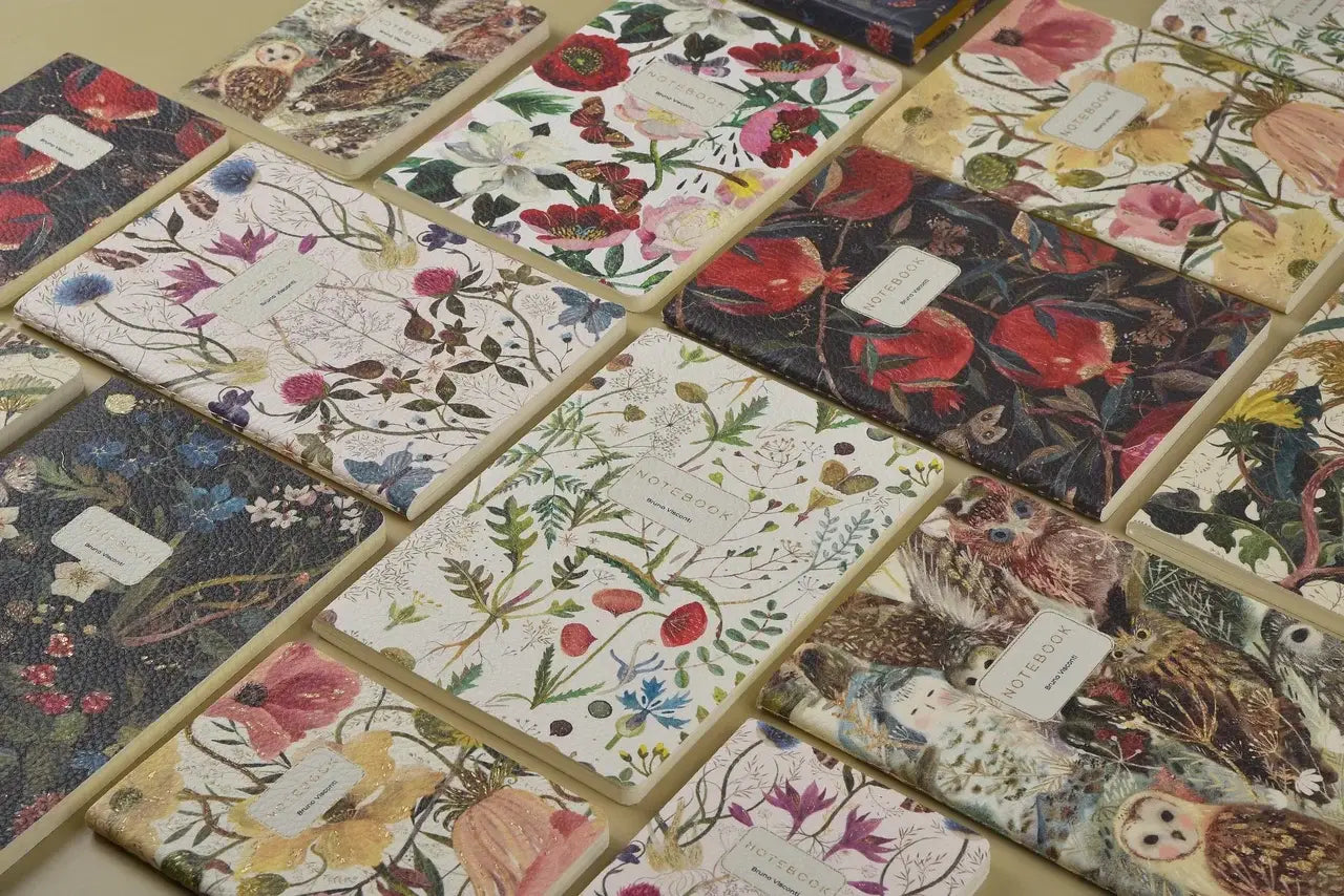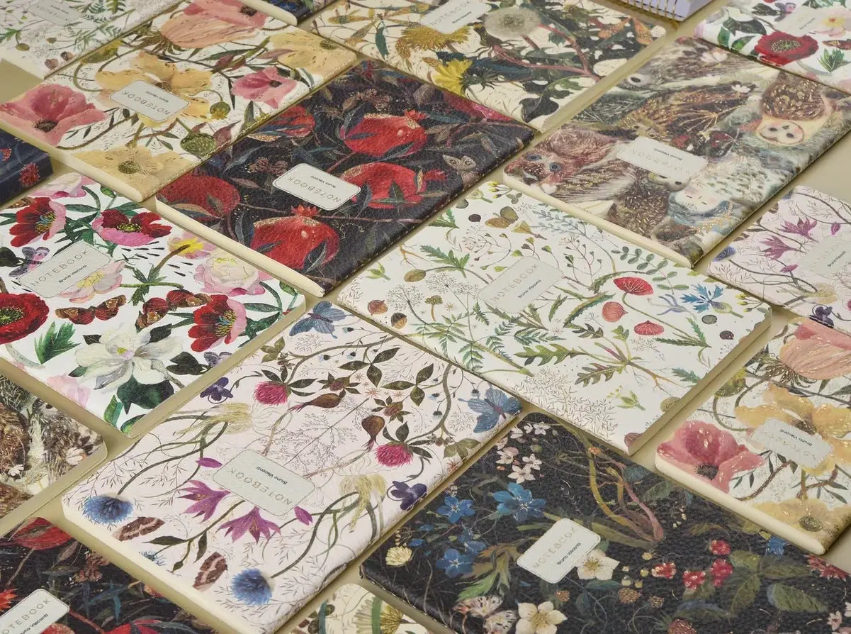 Our New A5 Vegan Leather Notebooks feature a beautifully illustrated and crafted vegan leather cover with a rich, textured, heavyweight feel. Notebooks are 5.8" x 8.3" and have 60 doubled sided sheets on 80 gm acid free paper.