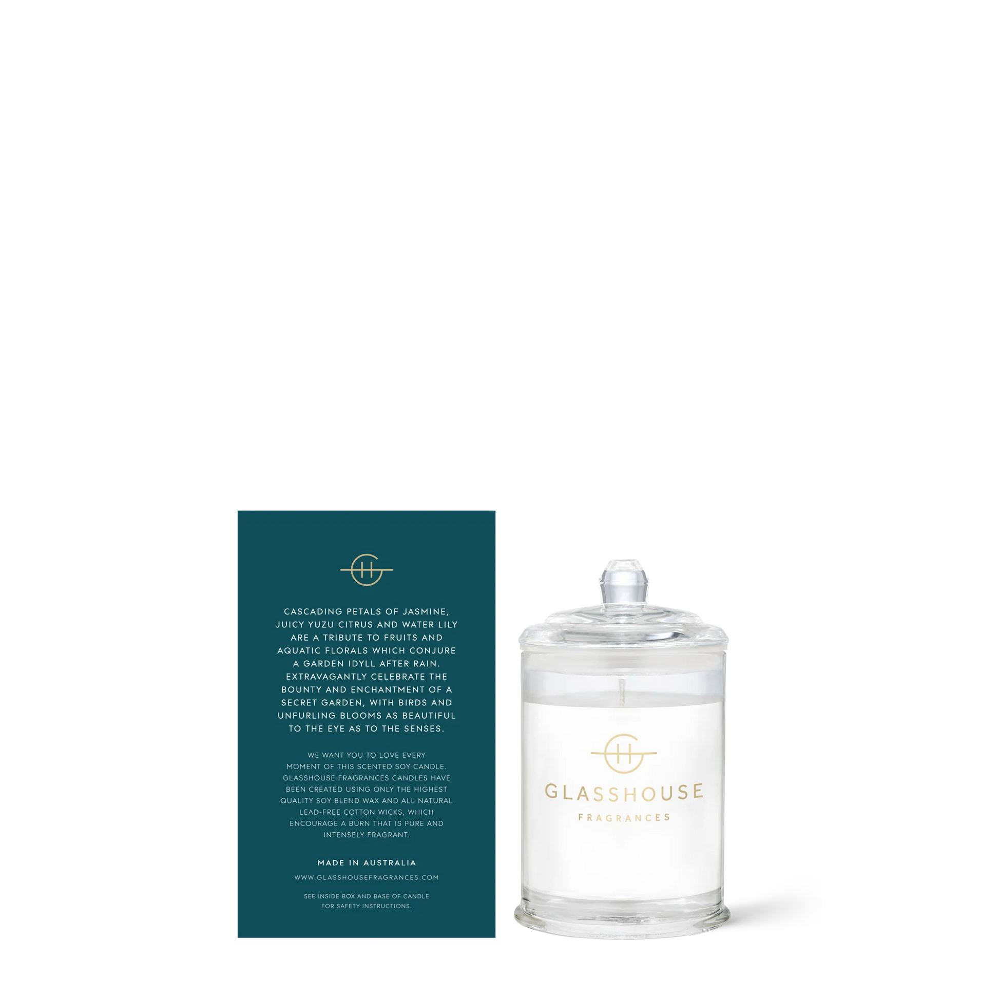 A dewy, transparent Aquatic Floral with Green Leaves and Citrus (Yuzu).