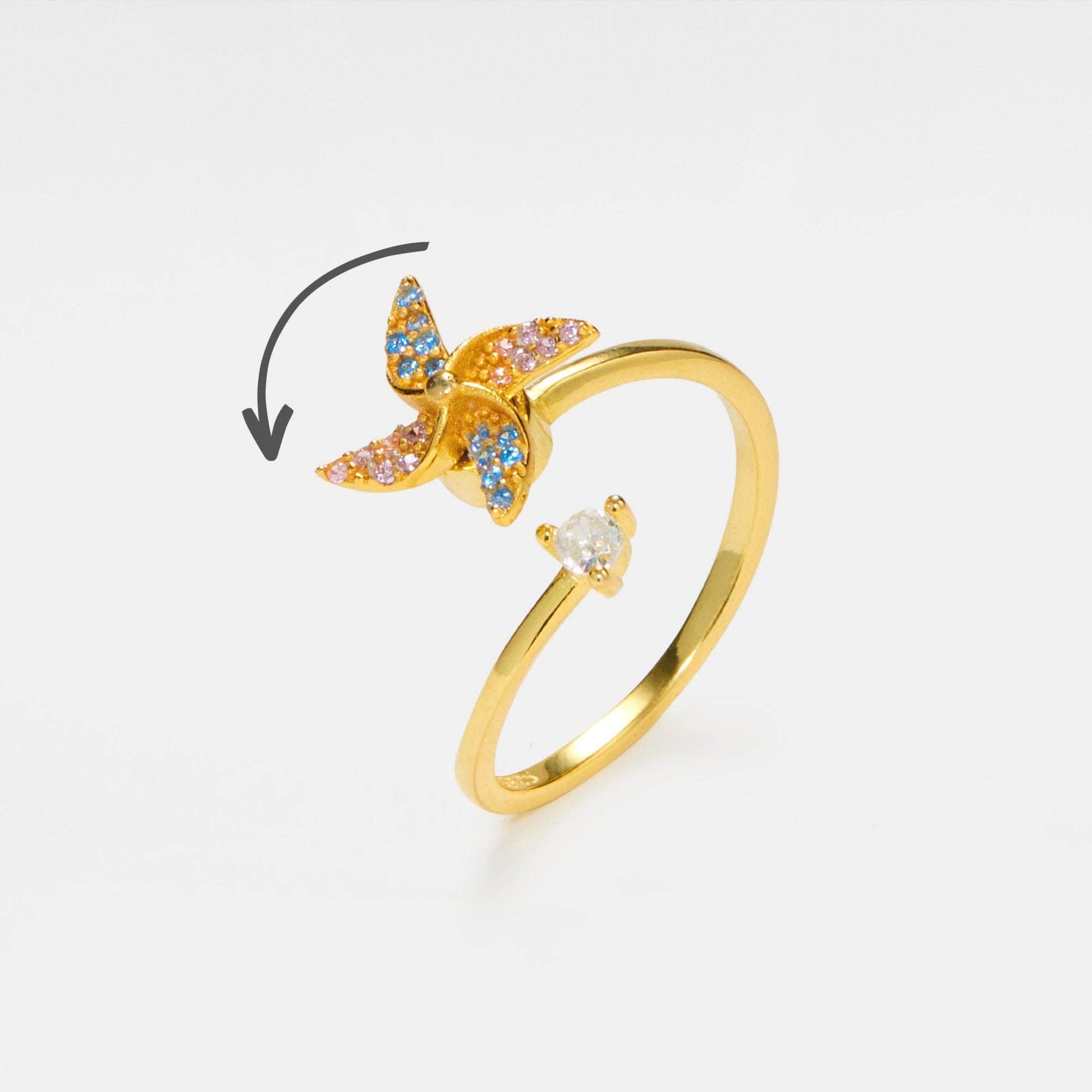 Windmill Anxiety Fidget Spinner Ring in 925 Sterling Silver